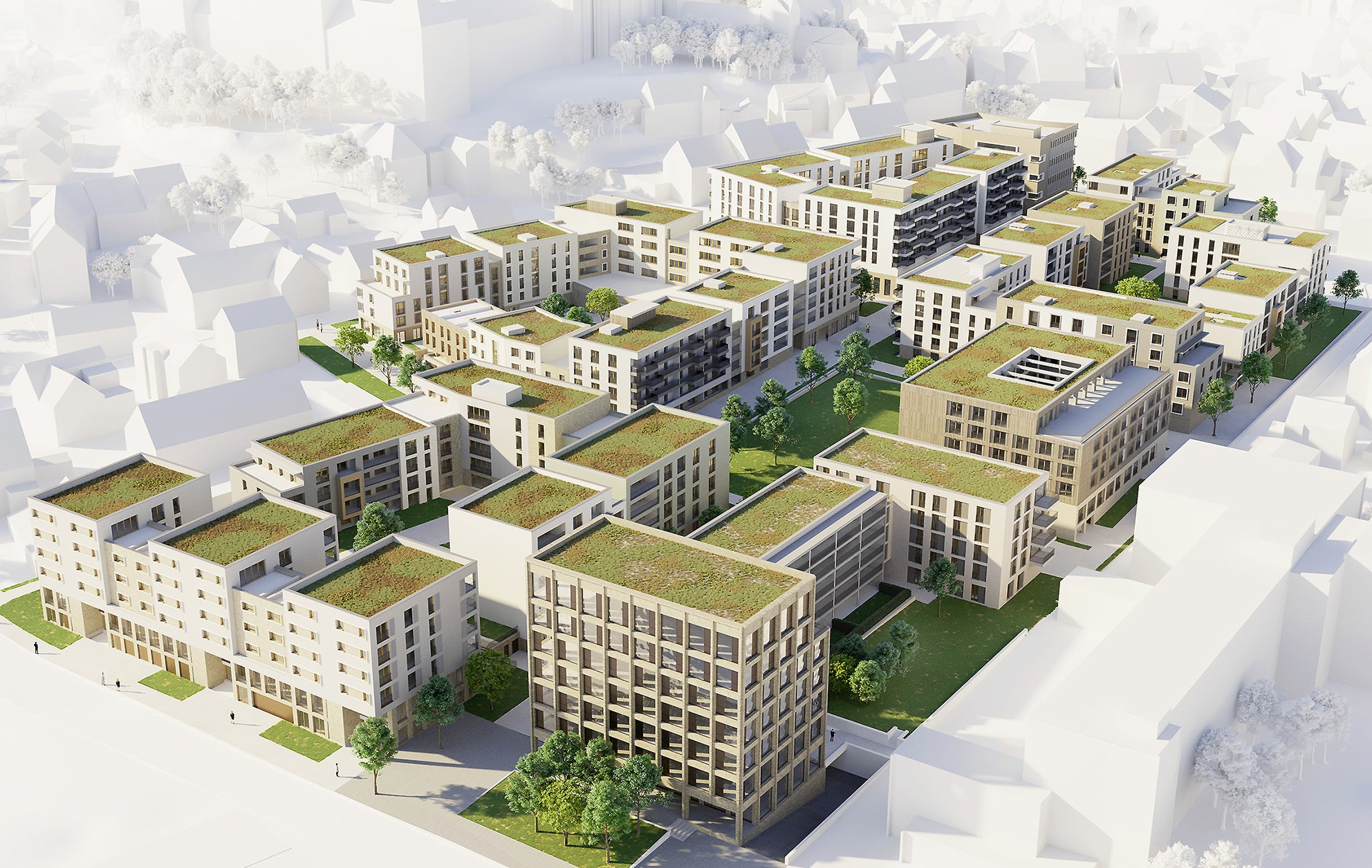 Neuer Wohnraum in Berlin-Neukölln: In sieben Gebäuden entstehen 173 Miet- und Eigentumswohnungen.