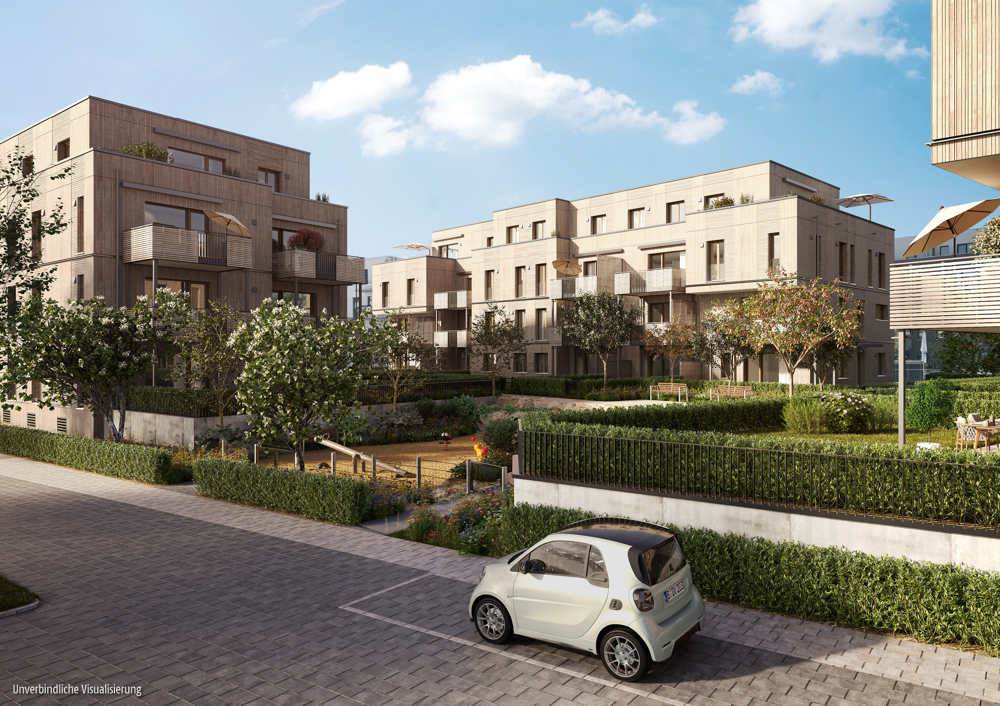 - begrünte Dächer mit Regenwasser-Retention für hervorragendes Mikroklima
