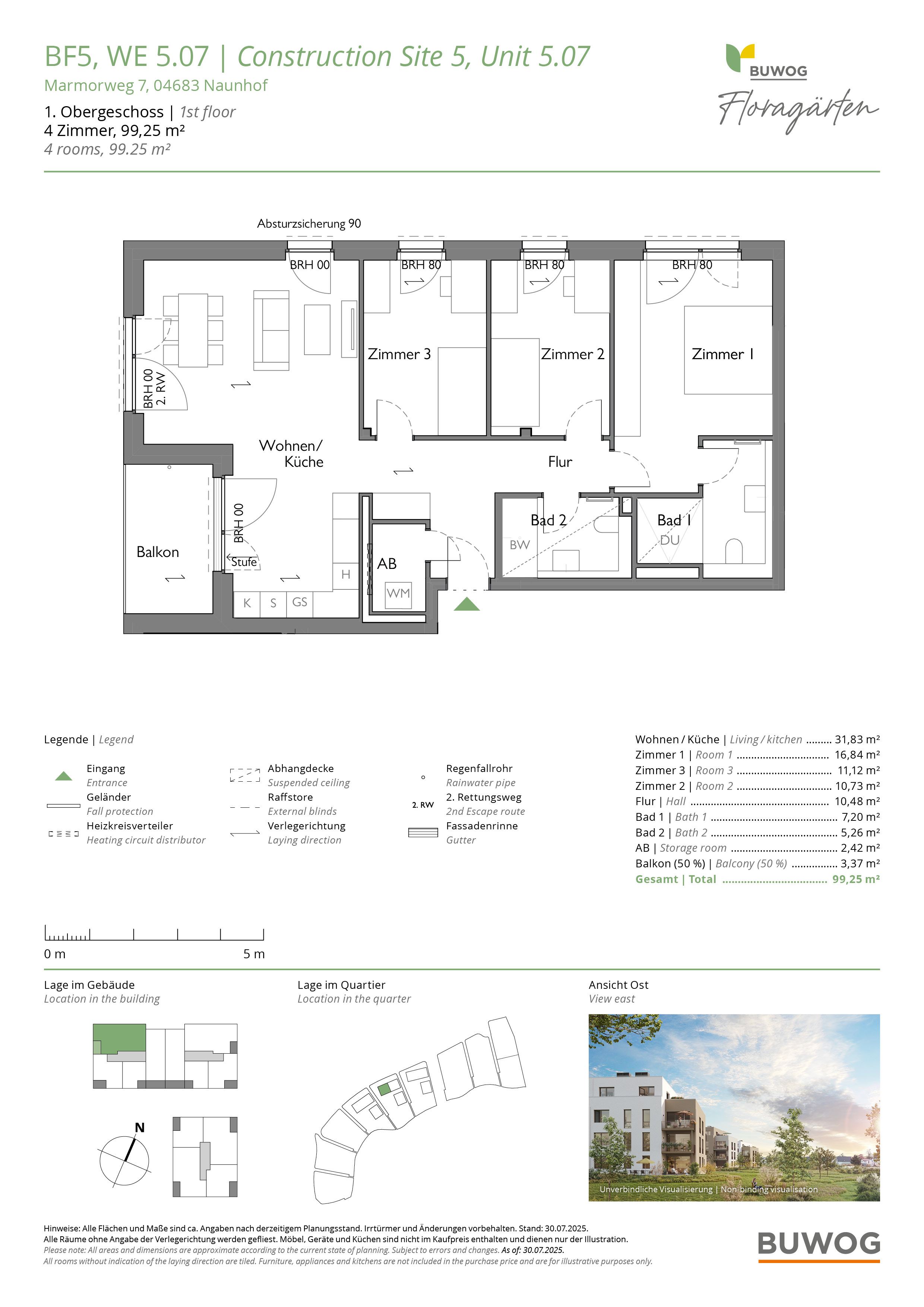 Direkt am Waldrand, in unmittelbarer Nähe zum Grillensee, baut die BUWOG hochwertige, teils barrierefreie Eigentumswohnungen mit 1 bis 5 Zimmer und vielseitigen Grundrissen. Die Wohnungen verteilen sich auf sechs locker angeordnete Gebäude, die in einer parkgleichen Außenanlage eingebettet werden – mit Wiesen, kleinen Wegen und vielen Bäumen, Blumen und Sträuchern. Die liebevoll begrünten Freiflächen bieten ganz viel Platz für Erholung und nachbarschaftliches Miteinander. Alle Wohnungen verfügen über Balkon oder Terrasse, Abstellkammer, Echtholzparkett und Fußbodenheizung. Die Energieversorgung setzt auf umweltfreundliche Photovoltaikanlagen und Luftwärmepumpen. (TH)