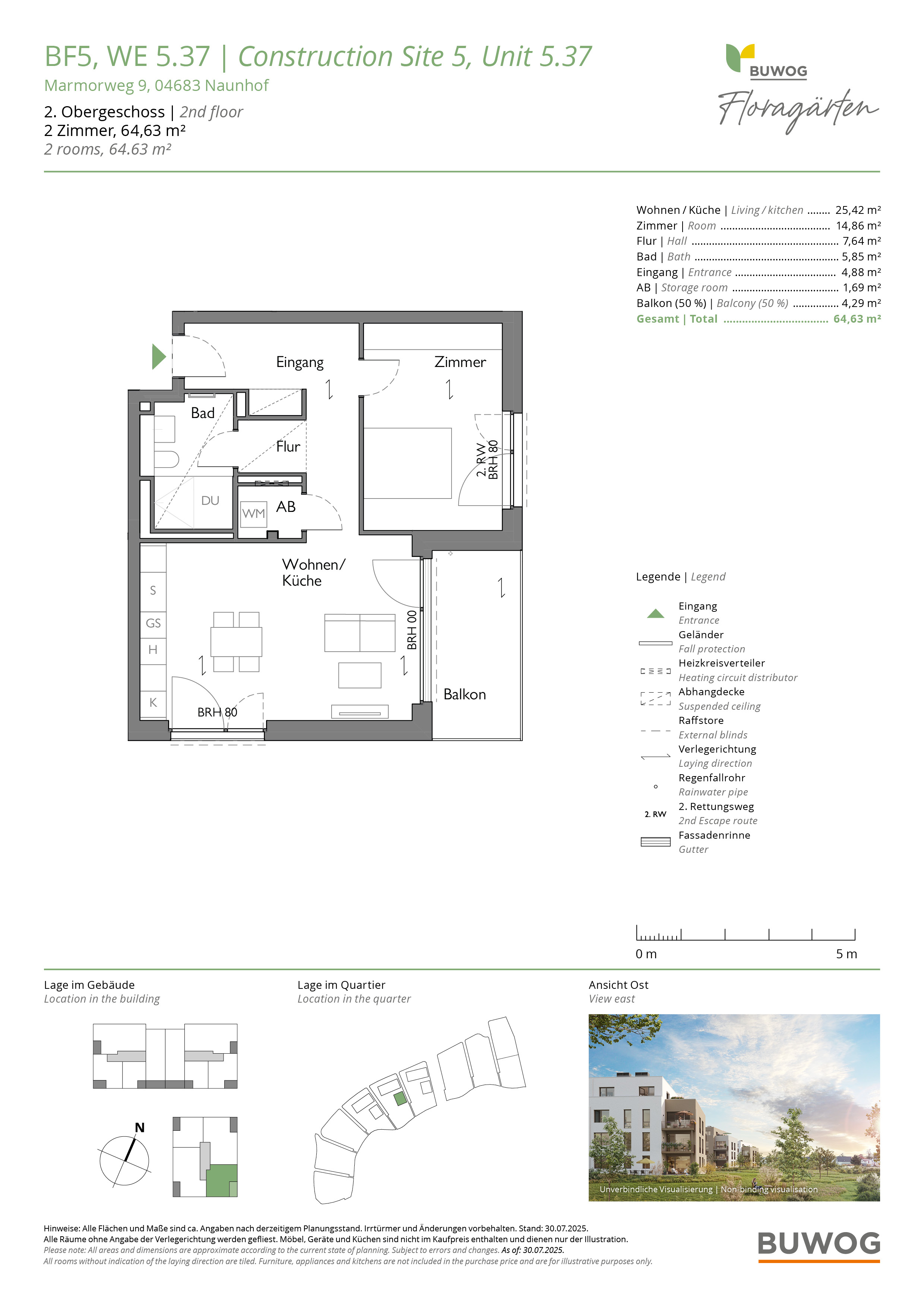 Autobahn A14 ca. 2 km, ca. 4 Min. mit dem Auto