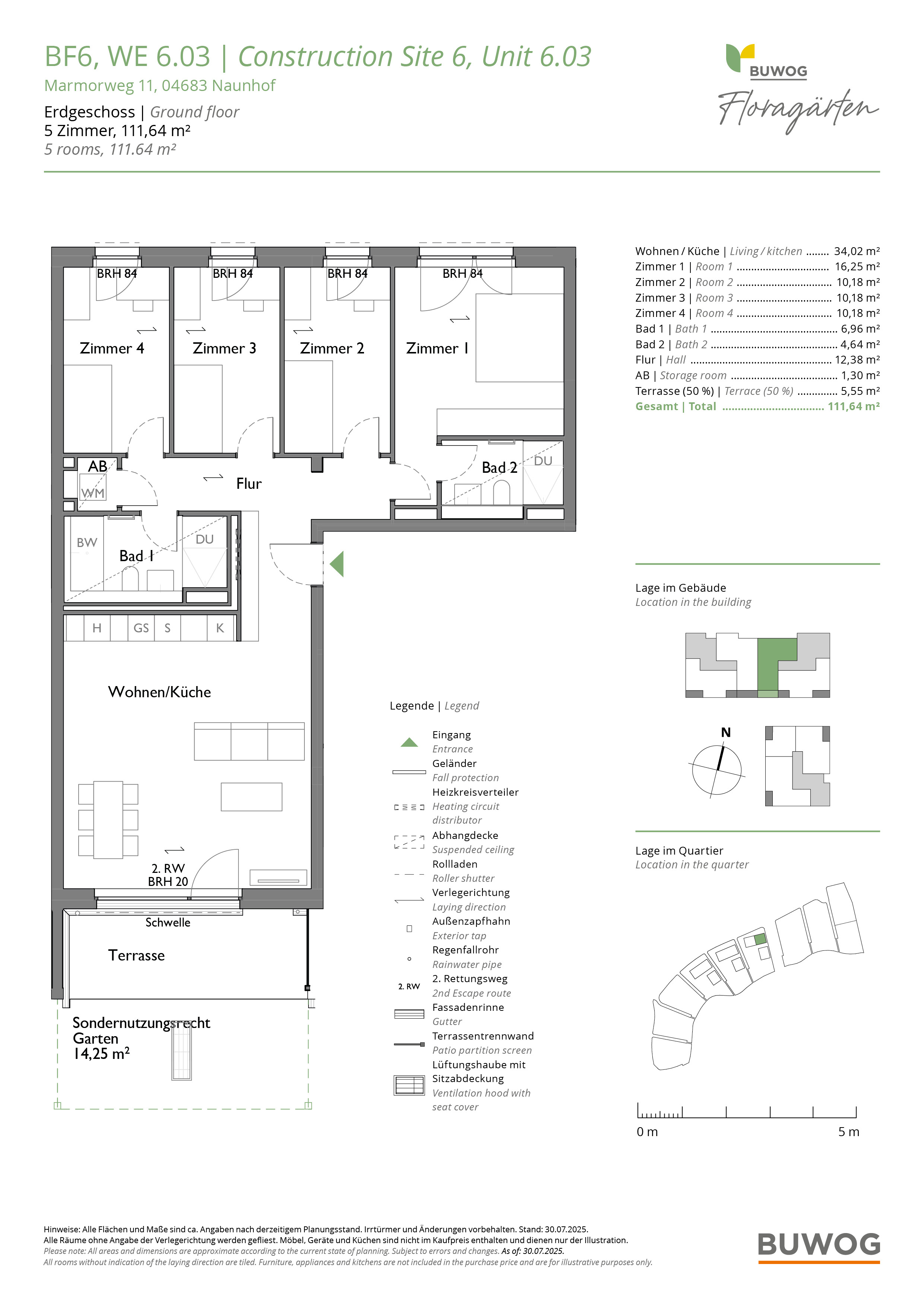 Direkt am Waldrand, in unmittelbarer Nähe zum Grillensee, baut die BUWOG hochwertige, teils barrierefreie Eigentumswohnungen mit 1 bis 5 Zimmer und vielseitigen Grundrissen. Die Wohnungen verteilen sich auf sechs locker angeordnete Gebäude, die in einer parkgleichen Außenanlage eingebettet werden – mit Wiesen, kleinen Wegen und vielen Bäumen, Blumen und Sträuchern. Die liebevoll begrünten Freiflächen bieten ganz viel Platz für Erholung und nachbarschaftliches Miteinander. Alle Wohnungen verfügen über Balkon oder Terrasse, Abstellkammer, Echtholzparkett und Fußbodenheizung. Die Energieversorgung setzt auf umweltfreundliche Photovoltaikanlagen und Luftwärmepumpen. (TH)