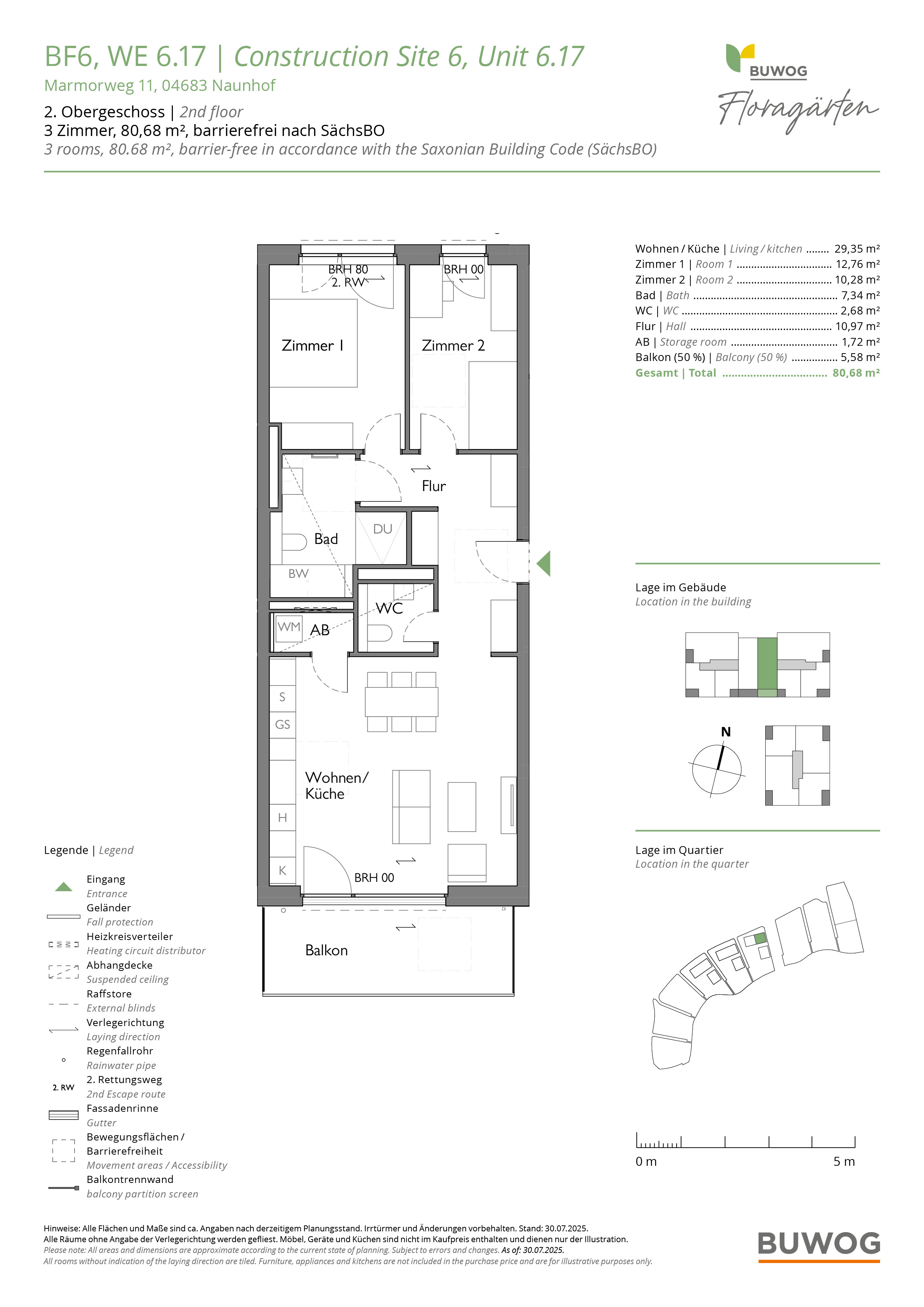 Direkt am Waldrand, in unmittelbarer Nähe zum Grillensee, baut die BUWOG hochwertige, teils barrierefreie Eigentumswohnungen mit 1 bis 5 Zimmer und vielseitigen Grundrissen. Die Wohnungen verteilen sich auf sechs locker angeordnete Gebäude, die in einer parkgleichen Außenanlage eingebettet werden – mit Wiesen, kleinen Wegen und vielen Bäumen, Blumen und Sträuchern. Die liebevoll begrünten Freiflächen bieten ganz viel Platz für Erholung und nachbarschaftliches Miteinander. Alle Wohnungen verfügen über Balkon oder Terrasse, Abstellkammer, Echtholzparkett und Fußbodenheizung. Die Energieversorgung setzt auf umweltfreundliche Photovoltaikanlagen und Luftwärmepumpen. (TH)