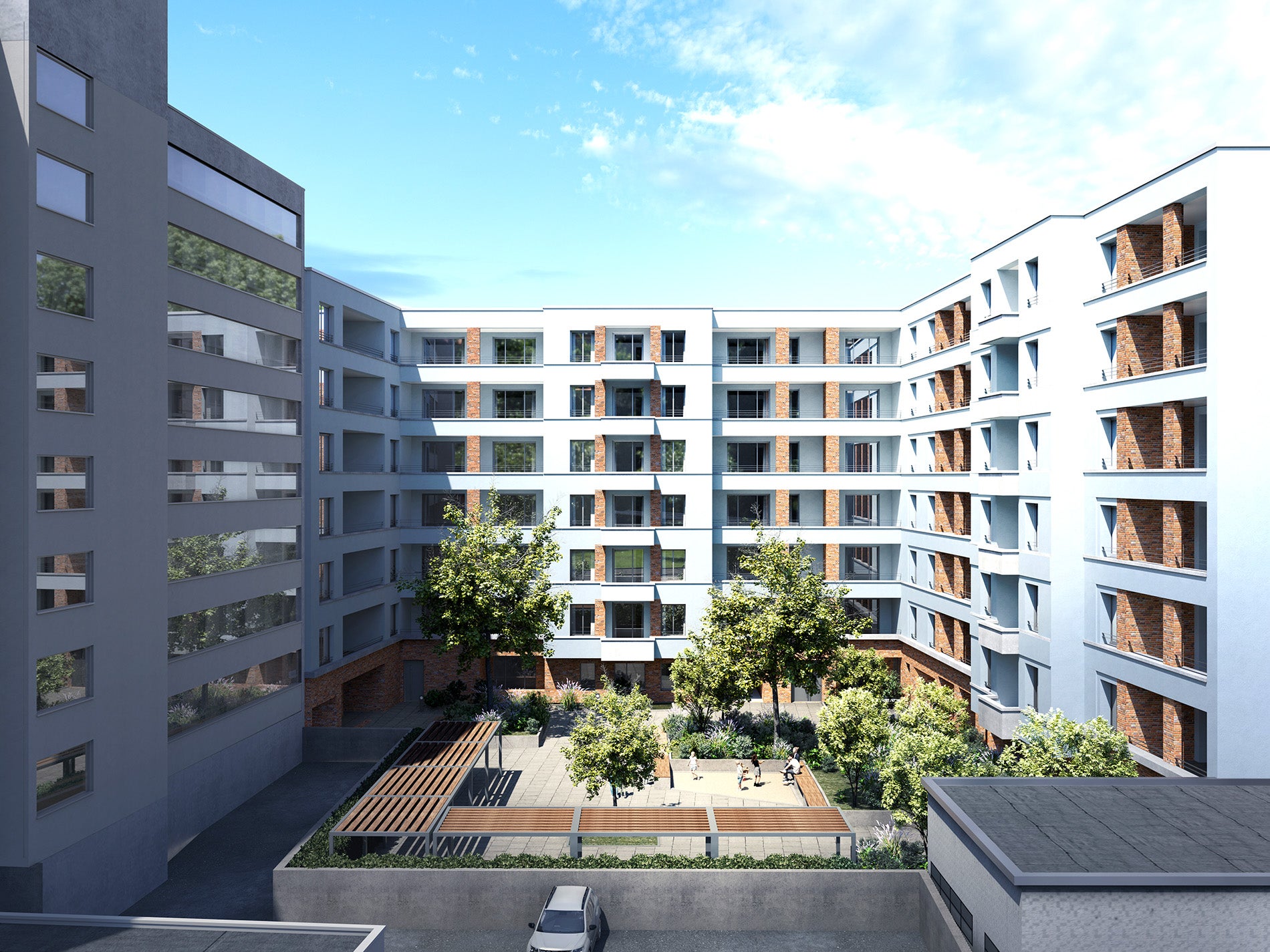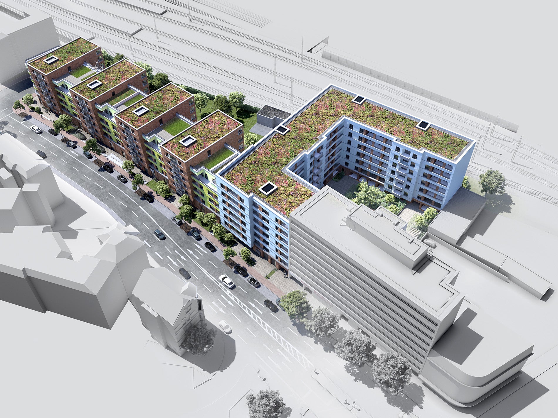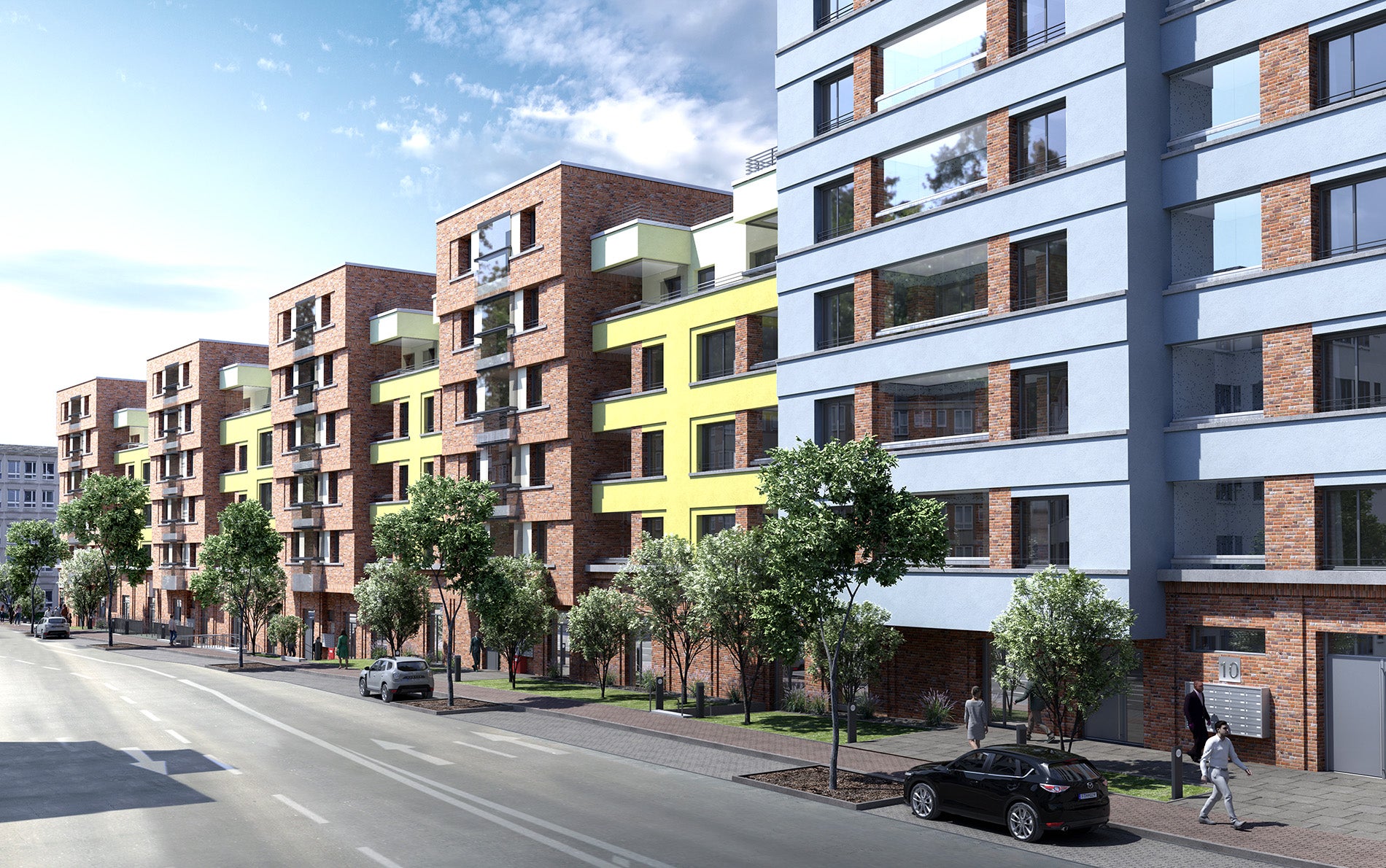 Auf dem 5.345 m² großen Grundstück an der Mörfelder Landstraße 10-18 in Frankfurt am Main entsteht ein neues, zukunftsweisendes Wohnquartier. Bisher wird das Grundstück gewerblich genutzt, u.a. für eine Autowerkstatt und Garagen – bald entsteht neuer Wohnraum. An dieser Stelle ist der Neubau von acht Mehrfamilienhäusern in konventioneller Bauweise mit 181 Wohnungen geplant, darunter 25 sozial geförderte Wohnungen. Das Projekt nach Entwürfen des Frankfurter Büros Stefan Forster Architekten umfasst zudem vier Gewerbeeinheiten und eine Tiefgarage. Die Gebäude werden von der BUWOG als Effizienzhaus EH 55 in massiver Kalksandsteinbauweise mit Wärmedämmverbundsystem geplant. Ein Teil der Wohnungen wird barrierefrei sein. Alle verfügbaren Dachflächen werden intensiv bzw. extensiv begrünt und leisten so einen Beitrag zur Dämmung und zum Stadtklima. (MD)